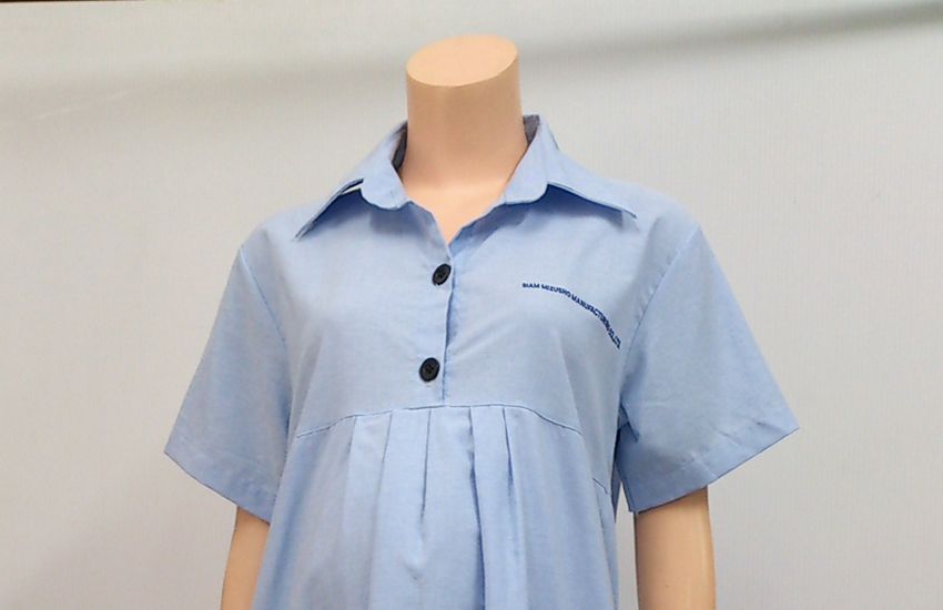 ยูนิฟอร์มคนท้องปกเชิ้ตสีฟ้า งานปักโลโก้บริษัท